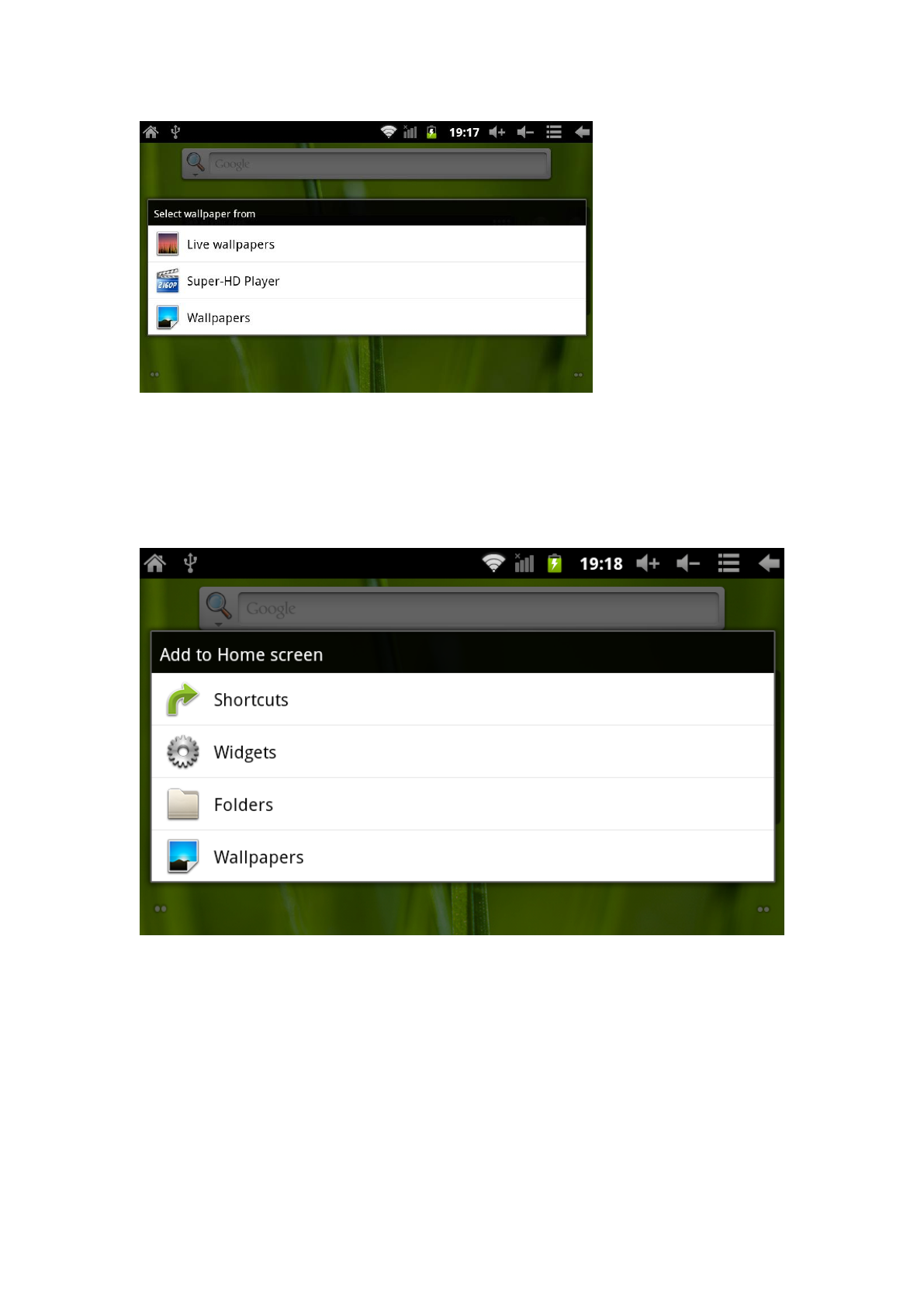 Appuyez sur l‟écran et maintenez, la boîte de dialogue suivante s‟affiche :